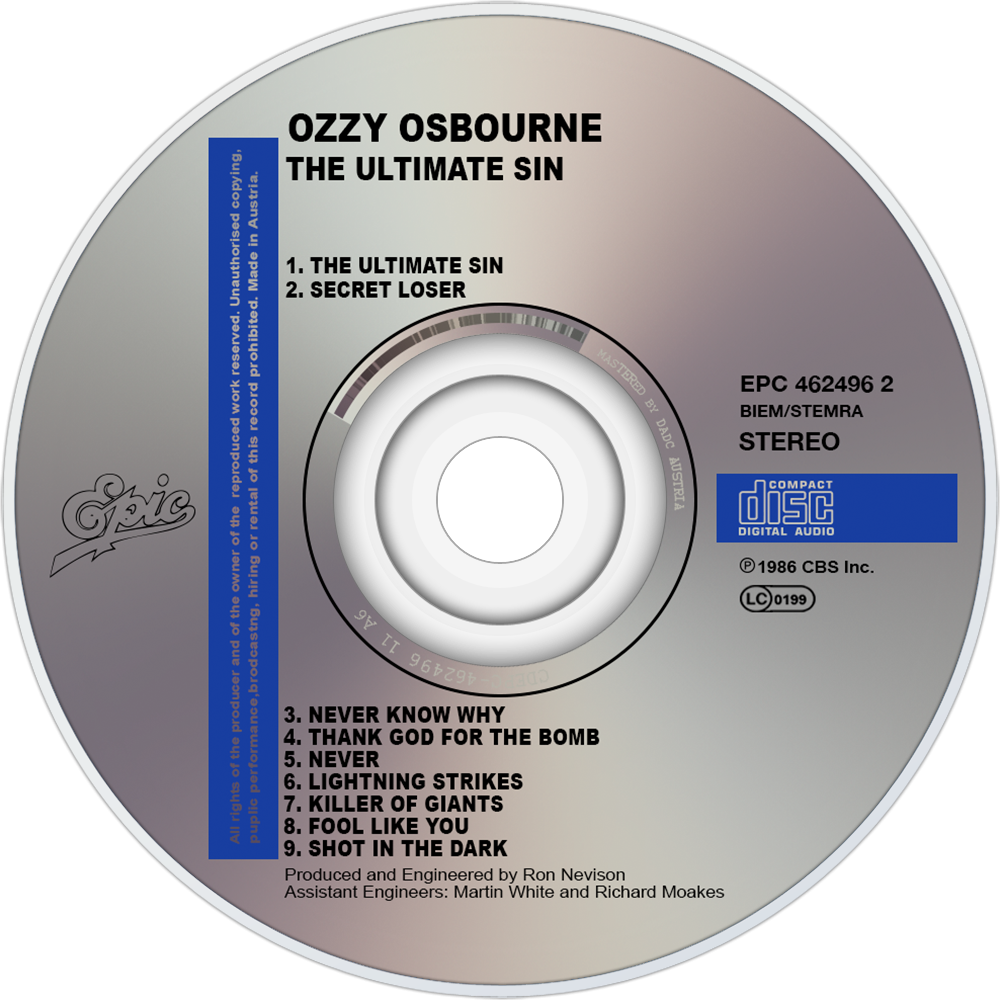 The Ultimate Sin is the fourth studio album by British vocalist Ozzy Osbourne. It was released on 22 February 1986, and it was remastered and re-issued on 22 August 1995. This album features guitarist Jake E. Lee (formerly of Mickey Ratt, Rough Cutt and Dio).